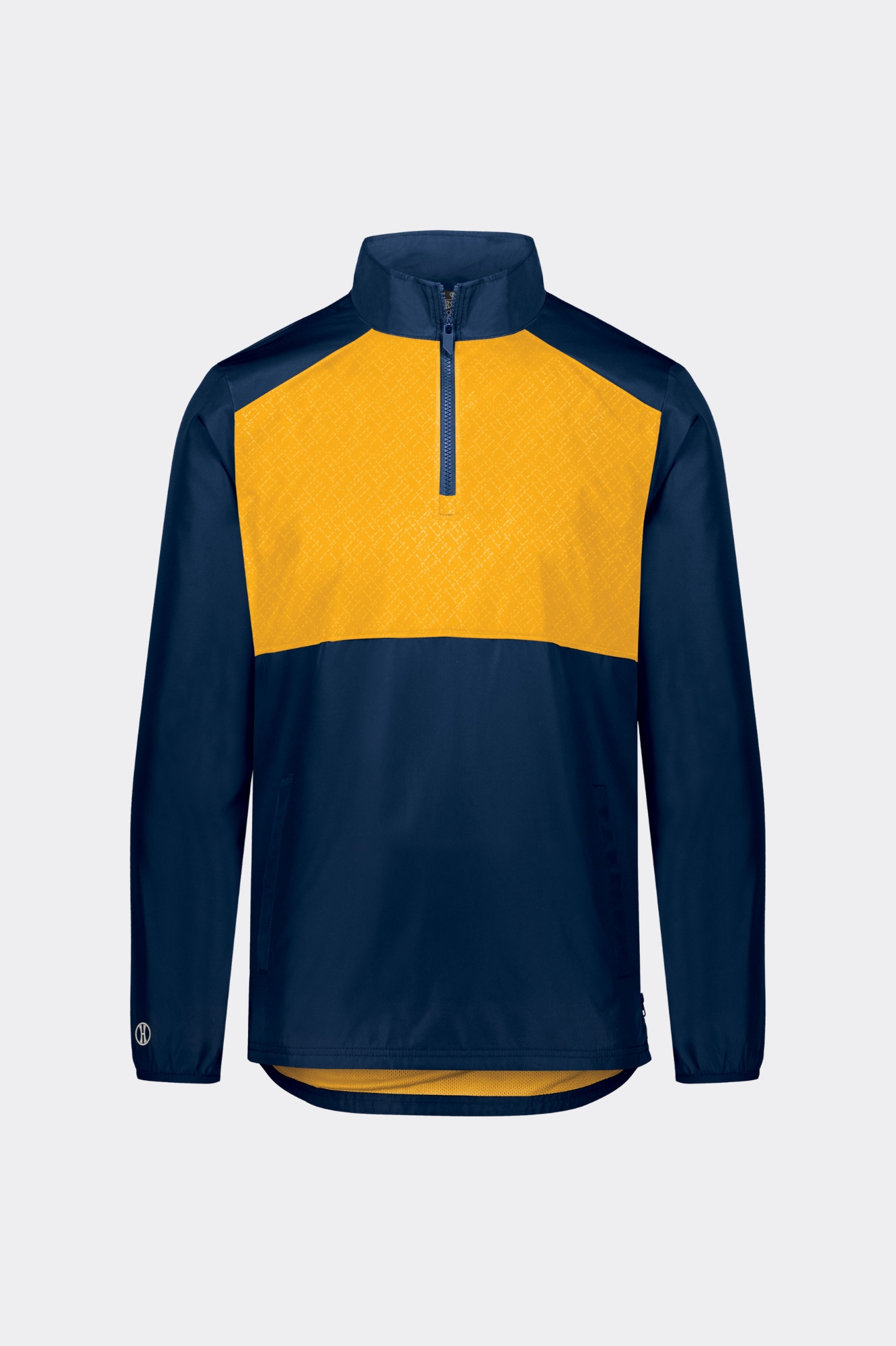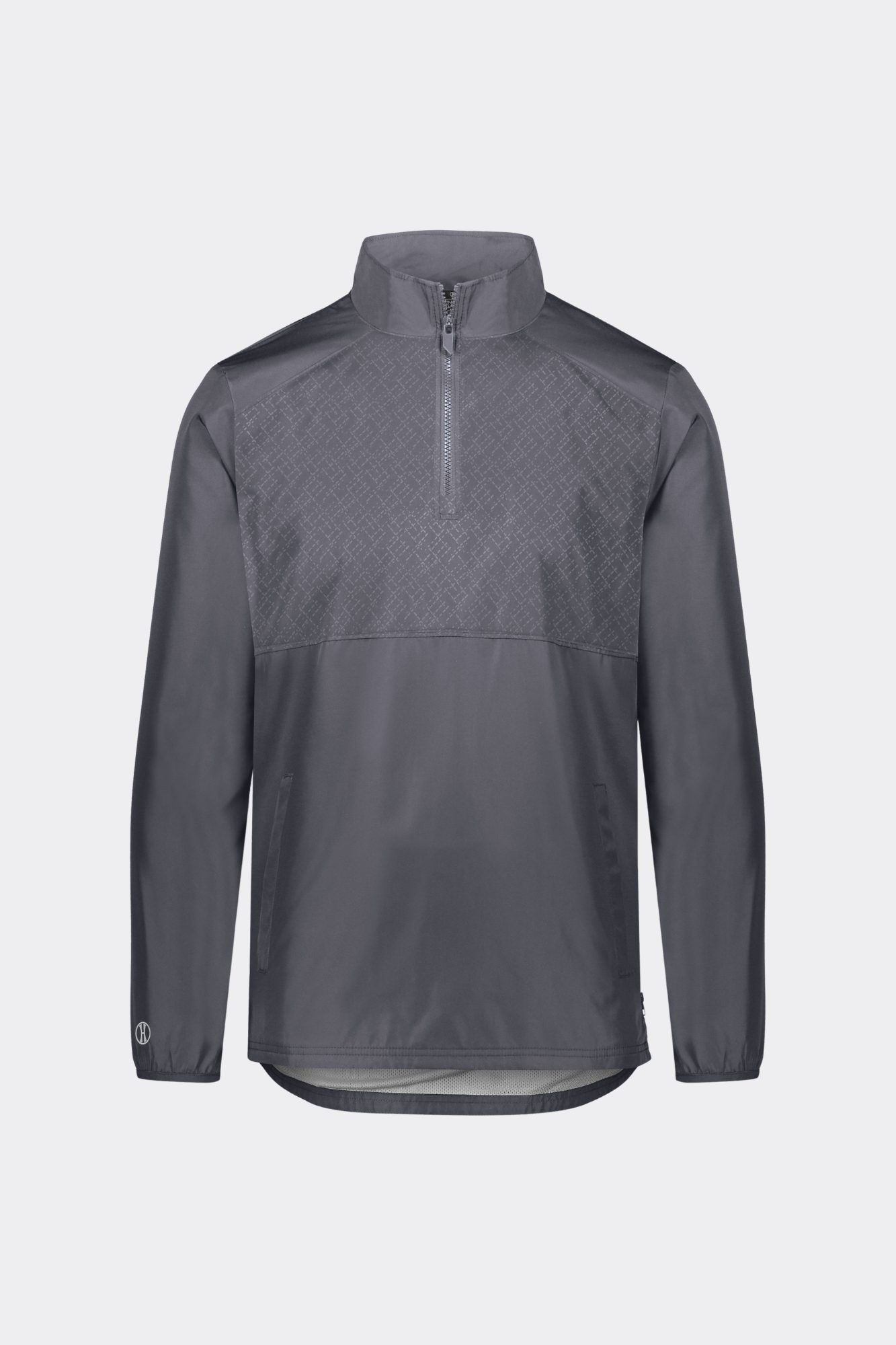 - Quarter zip pullover style with zipper garage